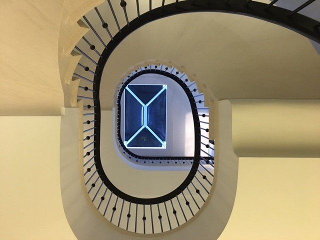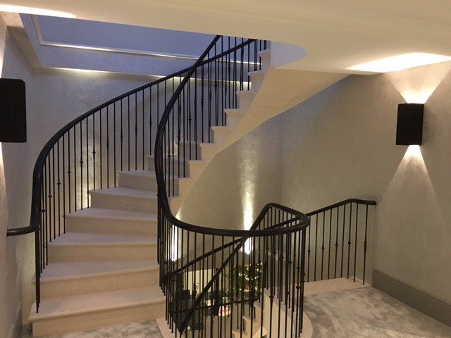 Stunning award winning post-tensioned free standing spiral stone staircase